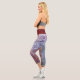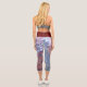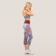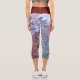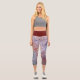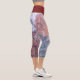 A lively abstract painting of pinks, orange, blues, and tans with dark and light coloured confetti to top off this magical, artsy, grunge, festive capris. A red burgundy high waist band is added for contrast.