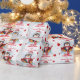 The cute pattern on this festive Christmas wrapping paper is of an adorable little koala bear wearing a red Santa Claus hat and sitting between wrapped gifts. Between the penguin images is your custom text in red. Everything is placed on a multi colour round ball confetti background that is sprinkled with red hearts. This is a perfect paper for grandparents, parents, aunts and uncles to wrap family gifts in. Make it say whatever you'd like!