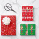 Confetti, Nutcracker, Reindeer & Snowflakes on Red Wrapping Paper Sheet