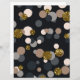 A pattern of random confetti dots in a pastel peach, maple brown and grey palette, with gold glitter on a dark background.