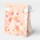 Confetti flower petal and outline flower in modern fall pastel shades of orange, coral, red with classic grey wedding thank you gift box. Ideal gift idea as a wedding favours or to place on reception dinner tables or party tables filled with sweets or gifts. Would also make a nice parting commemorative thank you for coming gift. Art and design by Sarah Trett.