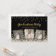 Elegant custom graduation party invitation design featuring gold and silver confetti over a black background, modern script typography with the words "Graduation Party" (in gold), the graduate's name (in silver) and three of your favourite photos framed in metallic gold foil. Personalise it with your party details on the back of the invitation.