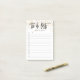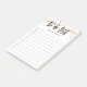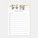 Chic personalised post-it note pad in crisp black and white features "to do list" at the top in handwritten style brush lettered typography, with a top border of gold, blush rose, and black confetti dots. Personalise with your name or choice of text beneath, or leave blank if desired. 11 lines with checkboxes help you keep track of all your important tasks!