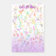 A personalised notepad designed with a festive and colourful confetti toss and a violet gradient background. Fill in the template fields with your information, remove all text or in customise select a typeface style, size, and colour you prefer..