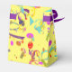 This favour box is designed with a colourful confetti toss over a yellow background. Click customise to add text in a font style, size, and colour you prefer. Also select from one of four ribbon colours.