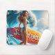 Confident Surfer Girl Walking Beach Waves Art Mouse Mat