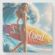 Confident Surfer Girl Walking Beach Waves Art Stone Coaster