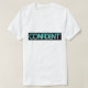 This whit mens wear shirt has confident written in text with a black border to compliment the text.