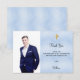 Confirmantion photo cross blue boy thank you card