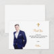A modern and elegant confirmation thank you card for both her and him. A chic white background decorated with a golden cross. Personalise and add your photo, thank you note and name.