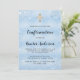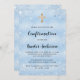 For a confirmation, celebrating a boy. A blue faux metallic looking background. Decorated with blue faux glitter dust. Personalise and add the name and details. The name and confirmation are written with a hand lettered style script