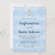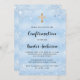 For a confirmation, celebrating a boy. A blue faux metallic looking background. Decorated with blue faux glitter dust. Personalise and add the name and details. The name and confirmation are written with a hand lettered style script