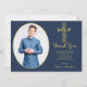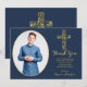 Confirmation Blue Gold Cross Boy Photo Thank You Card