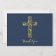 Modern Confirmation Thank You Card with a golden cross on a dark blue background. Personalise with photo, text and name.