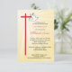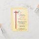 Beautiful invitation card for your son's Confirmation. Golden rays are shining behind a cross in red and a white dove. The red is the colour of Confirmation and the dove symbolises the Holy Spirit. Personalise the text to make it perfect for your needs for a guy's Confirmation. The corners are rounded adding a cohesive element with the rounded edges of the cross.