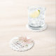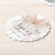Beautiful blush pink bow with roses decorates this elegant Confirmation round paper coaster with a scalloped edge