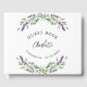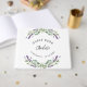 A stylish white background decorated with violet lavender flowers and eucalyptus greenery. Personalise and add a name.