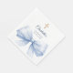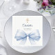 A white background color. Decorated with a large light blue colored bow and a golden cross. Personalize and add the name and date.