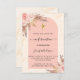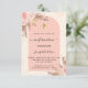 An arch frame and rose gold marble print as background. Decorated with rose gold and pink florals, roses and pampas grass. Personalize and add a name and details.