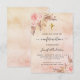 A rose gold, blush pink rustic faux metallic looking background. Decorated with rose gold and blush pink florals, roses, pampas grass and a golden cross. Personalise and add a name and details.