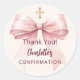 Confirmation pink bow girl ivory cross thank you classic round sticker