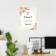 Golden, peach coloured marble print as background decorated with a golden cross, pampas grass and blush pink flowers and a white arch shaped frame. Personalise and add a name.