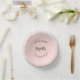 A rose gold, blush background with faux silver sparkles. The text: The name is written with a large modern hand lettered style script. Personalise and add a date, name.