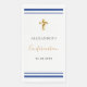 For an elegant confirmation. A chic white background. Decorated with royal blue frames and a faux gold cross. Personalise and add a name and a date. Black and golden letters.