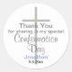 Elegant Thank You Confirmation Son round stickers. Simple hand-painted silver cross with gold accents against a white background. Personalise with your child's name in blue text and date in black text. Original Graphic Artwork and Design © TamiraZDesigns.