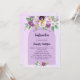 A violet, lavender watercolored background. Decorated with violet and purple watercolored flowers and a golden cross. Personalise and add your name and reception details.
