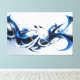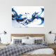 Sweeping ribbons of blue, white, and deep charcoal intertwine across a luminous field, creating a sense of continuous motion and controlled energy. This abstract composition balances fluid curves with sharp accents, evoking currents, airflow, and the elegance of engineered movement. Printed on canvas, the artwork offers a modern, dynamic presence—refined enough for minimalist interiors yet expressive enough to command attention in contemporary spaces.