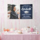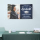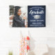 Add an elegant personalised touch to college or high school graduation party decorations with this custom photo navy blue, white and silver banner. Design features a faux brushed stainless steel graduation cap, stylish modern typography, hand written style script calligraphy, and a picture of the graduate, such as a senior picture or image from the commencement ceremony. Please note that silver is grey printed colour, not metallic foil. This party sign is a stylish way to celebrate the special day. Congratulations to the graduate!