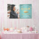 Add a personalized touch to college or high school graduation party decorations for her with this custom photo teal blue, gold, and white banner. Design features a faux brushed stainless steel background, gold foil look mortar board, stylish modern typography, handwritten style script calligraphy, and one photo of the graduate, such as a senior picture or image from the commencement ceremony. Please note that gold is printed color, not metallic foil. This party sign is an elegant way to celebrate the special day. Congratulations to the graduate!