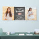 Add a personalised touch to college or high school graduation party decorations with this custom photo banner. Design features a dark grey faux chalkboard background, trendy pink rose gold faux metallic foil mortar board, stylish modern typography, handwritten style script calligraphy, and 2 photos of the graduate, such as senior pictures or images from the commencement ceremony. This party sign is an elegant way to celebrate the special day. Congratulations to the graduate!