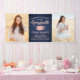 Add a personalised touch to college or high school graduation party decorations with this navy blue and pink custom photo banner. Design features a dark blue background, faux rose gold foil graduation cap, stylish modern typography, handwritten style script calligraphy, and 2 photos of the graduate, such as senior pictures or images from the commencement ceremony. Please note that rose gold is printed colour, not metallic foil. This party sign makes an elegant addition to the graduate's special day celebration. Congratulations to the graduate!
