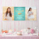 Add a personalised touch to college or high school graduation party decorations for her with this custom 2 photo teal blue, gold, and white banner. Design features a faux brushed stainless steel background, gold foil look mortar board, stylish modern typography, handwritten style script calligraphy, and two photos of the graduate, such as senior pictures or images from the commencement ceremony. Please note that gold is printed colour, not metallic foil. This party sign is an elegant way to celebrate the special day. Congratulations to the graduate!