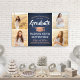 Add a personalised touch to college or high school graduation party decorations with this custom 4 photo collage navy blue, copper, and white banner. (IMAGE PLACEMENT TIP: An easy way to centre a photo exactly how you want is to crop it before uploading to the Zazzle website.) Design features a blue ombre background, faux foil mortar board, stylish modern typography, handwritten style script calligraphy, and four photos of the graduate, such as senior pictures or images from the commencement ceremony. Please note that copper is printed colour, not metallic foil. This party sign is an elegant way to celebrate the special day. Congratulations to the graduate!