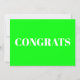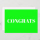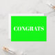 Congrats, Congratulations, neon green screen white modern Note Card.