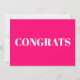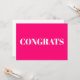 Congrats, Congratulations, hot pink fuchsia white modern Note Card.