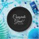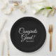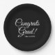 Congrats grad black and white custom classic script text and class year graduation party paper plates.
