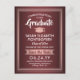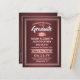 Share the joyful news of your upcoming graduation party as well as a favourite picture with these elegant burgundy and faux rose gold foil save the date postcard invitations. Photo and all text are simple to customise. (IMAGE PLACEMENT TIP: An easy way to centre a photo exactly how you want is to crop it before uploading to the Zazzle website.) Design features a maroon red background, modern white typographyk handwritten style script calligraphy, and a photo of your choice, such as a senior picture or image from the commencement ceremony. For a unique finishing touch, address card with a pink or white ink pen. This stylish graduation announcement card is a chic way to begin your special day celebration. Please note that gold is printed to look metallic, and is not actual foil. Congratulations to the graduate!