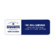 Graduation return address label featuring a graduation cap, Class of year, your graduate's name - your family name and address. Perfect for sending out graduation party invitations and announcements. Easily change the background colour to match your school colour - click on customise/personalise and scroll to the colour picker - also change text colour.