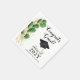 Create unique elegant class of 2025 graduation napkins with saying Congrats Grad, year and name templates decorated with emerald green eucalyptus foliage and graduate's cap illustrations.
