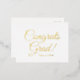 Congrats grad black and white custom classic script text graduation gold foil postcard.