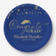 Congrats Grad Gold Script Graduation Party Blue Paper Plate