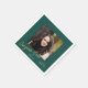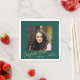 These graduation party paper napkins feature a square photo and gold script text on a dark green background. The script text reads: Congrats Grad. Personalise with your favourite senior photo for a fun accent to your graduation party celebration.