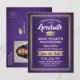 Share the joyful news of an upcoming graduation party with custom photo purple and faux gold foil save the date postcard invitations. The picture and wording on this template are simple to personalise with graduate name, class year and other announcement details of your choice. The design features an elegant striped border, stylish modern calligraphy, classic vintage typography and one favourite photo, such as a senior picture or an image from the commencement ceremony. Please note that gold is printed ombre colour, not metallic foil. These stylish graduation cards are an elegant way to share a special day celebration with family and friends. Congratulations to the graduate!