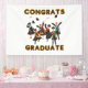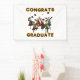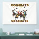 This banner design features the words "Congrats Graduate" with Studly print font plus grey coloured letters yellow outline showcasing students celebrating after a graduation in this education theme. This banner has single side printing outdoor safe measures 4"x6" made with an elegant matte finish and is both fade and tear resistant for Indoors or outdoor use great for advertise anything, from birthdays to graduation, weddings to anniversaries. Hemmed and thermally welded edges for neat finish outdoor banners can be bought with metal grommets.