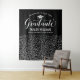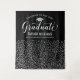 Honor your grad in sleek style with this black and silver confetti graduation party backdrop! The design features "Congrats to Our Graduate" in flowing white script, a silver grad cap, and personalized fields for the graduate's name and school above a cascade of shimmering silver confetti dots on a rich black background. Customize all text for a polished celebration centerpiece. Perfect as a photo wall, dessert table, or party focal point.