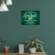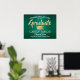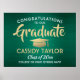 Add a personalised touch to a college or high school graduation celebration with an elegant green, gold and white 18"x24" poster. All text is simple to customise. Design features a green faux brushed metallic background, faux foil mortar board cap, stylish modern typography, and handwritten style script calligraphy. Please note that gold is printed colour, not foil. This graduation party sign is an elegant way to celebrate the special day. Congratulations to the graduate!